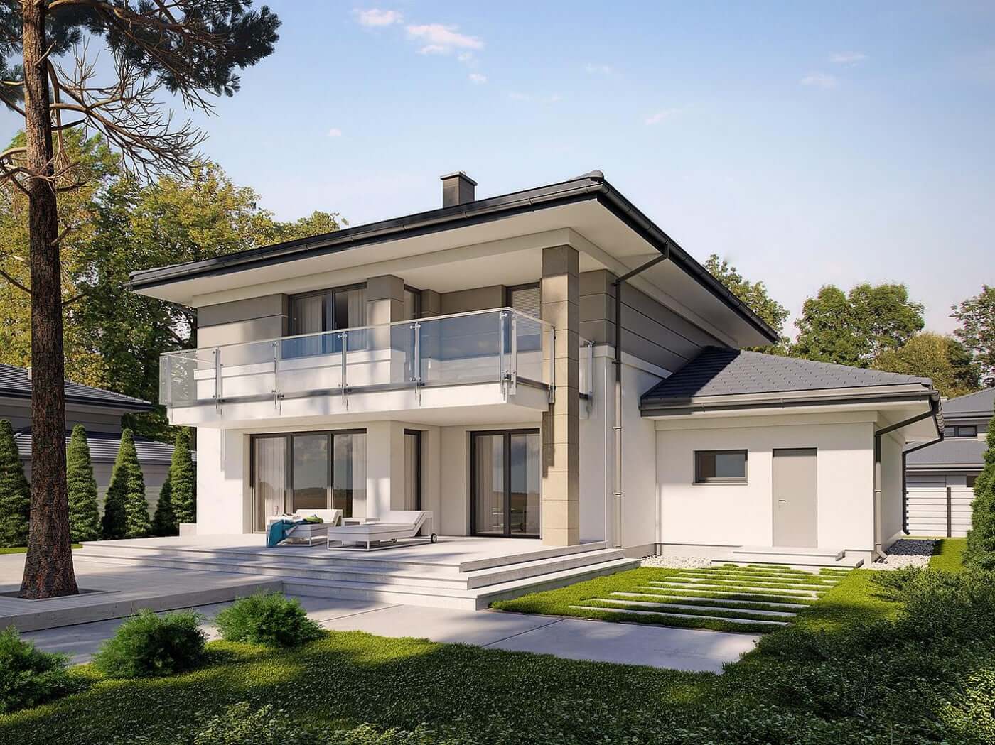 Срок сборки дома зависит от типа выбранной кровли. Если вы выбираете дом в стиле «хай-тек» с плоской кровлей, то его сборка займет всего 2-3 дня. Если же вы рассматриваете такие стили, как «шале», «барн» или «классику» с вальмовой кровлей, то здесь нужно учесть сроки кровельных работ, которые могут занимать 5-7 дней.