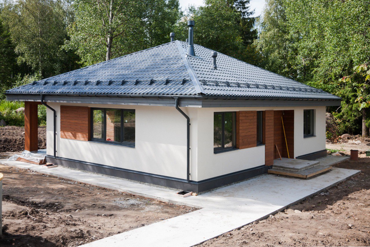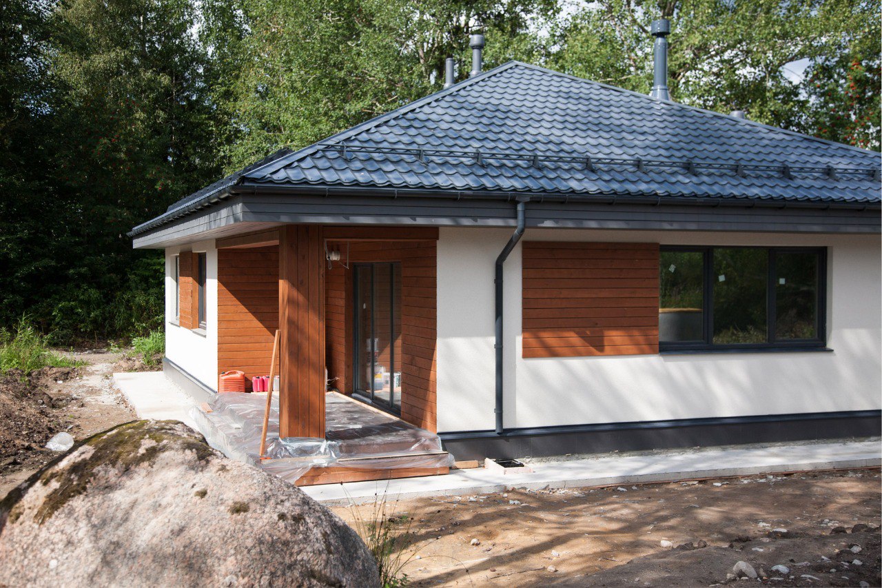 Дом построен во Владимирской области. Общая площадь 88 кв.м, 3 спальни. Отделка фасада планкеном и штукатуркой, выполнены внешние работы, проведены все коммуникации.